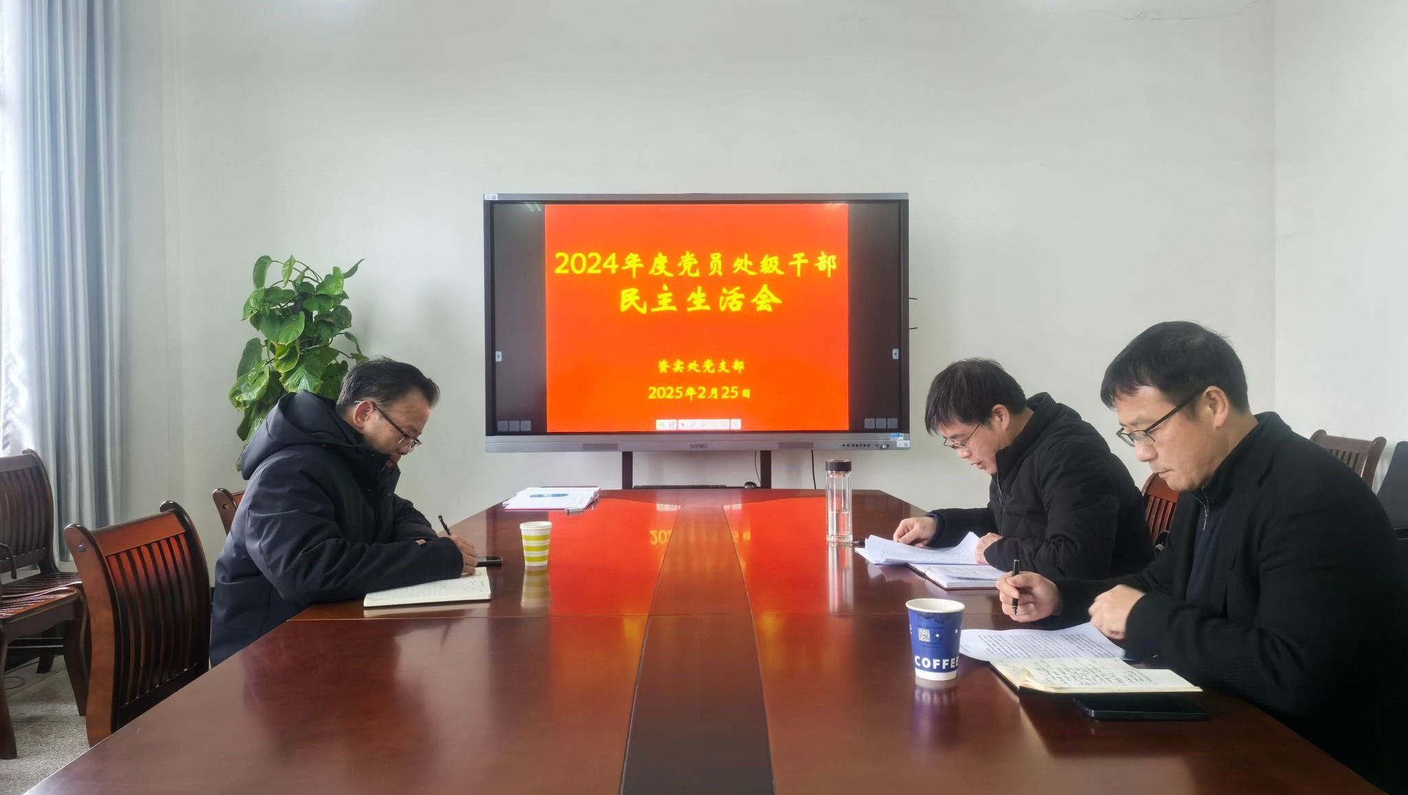2月25日,资实处党支部在敏毅楼411会议室召开2024年度处级领导干部民主生活会,会议由党支部书记钟洪主持,机关党委委员谭铮到会指导。